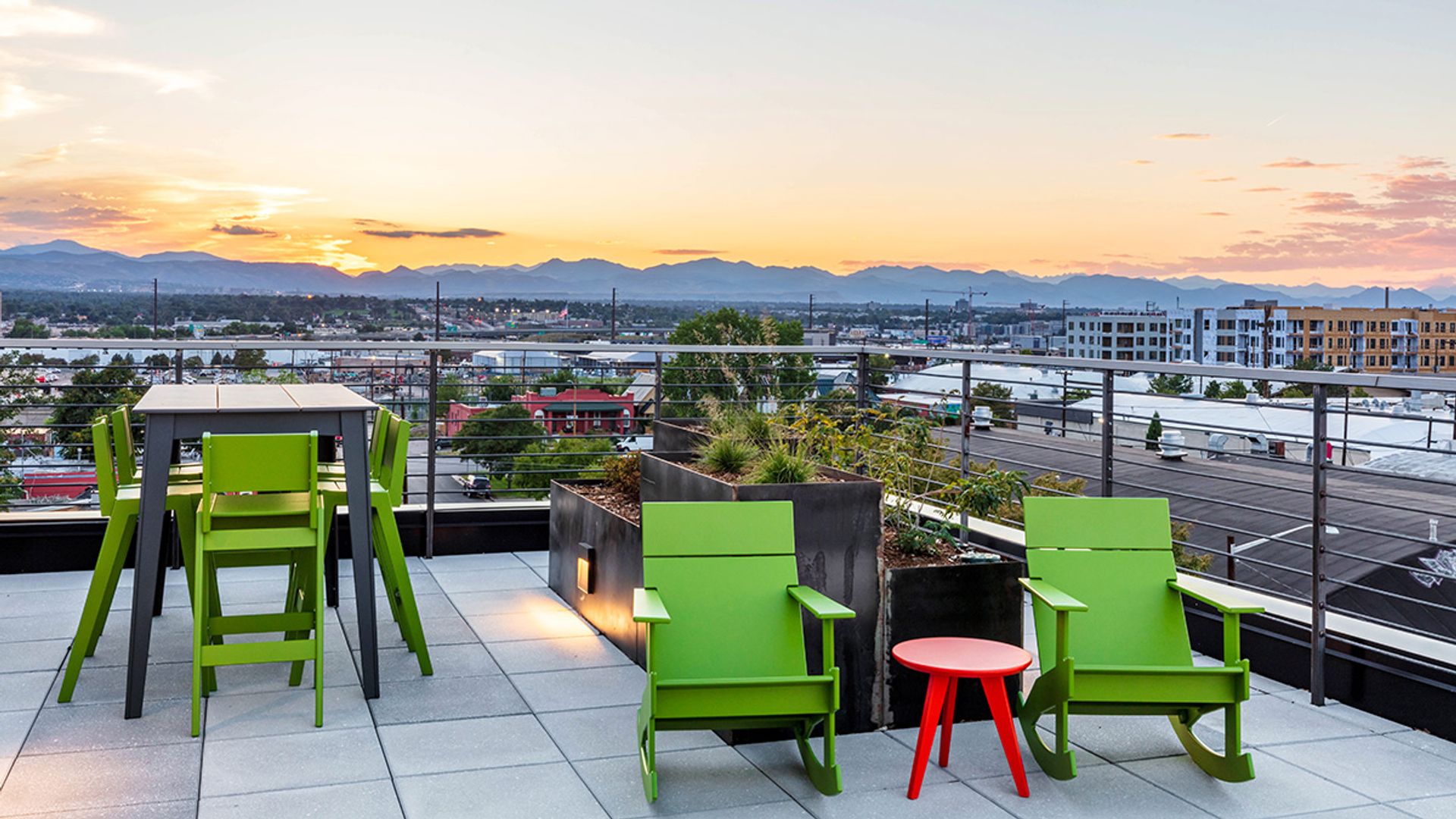 Life at Tula extends beyond your front door. Head upstairs to the rooftop terrace and take in panoramic 360-degree views of the Denver skyline and Rocky Mountains. Gather with friends around the fire pit, grill dinner in the outdoor kitchen, relax while your pets explore the pet area, or simply enjoy the open sky above. A large solar array reflects Tula’s commitment to mindful, sustainable living. Residents have access to an on-site fitness center, plus garage and surface parking options for added convenience.