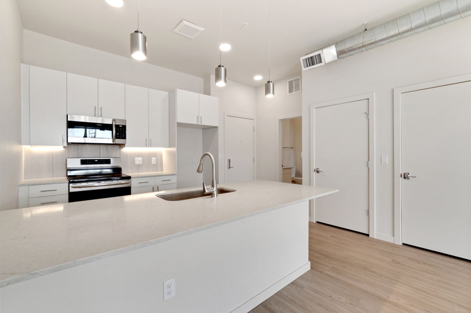 Our spacious studio, one and two-bedroom apartments feature large rooms with walk-in closets, sleek finishes, open layouts and private balconies or Juliet doors that let in abundant natural light and fresh mountain air. Bring the outside into your living room with fully functioning garage door walls. Each unit includes a full-size washer and dryer, stainless steel appliances and smart design details that make everyday living easy and comfortable.