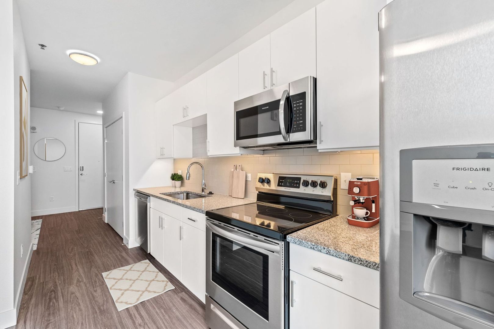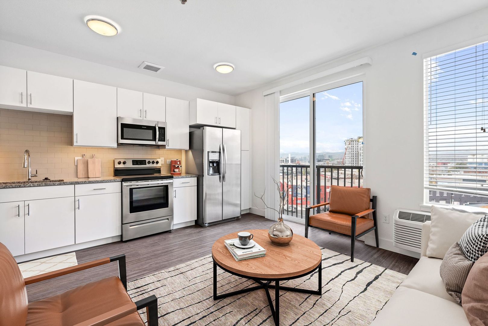 The property features large studio and one bedroom homes with high ceilings, expansive balconies or patios, and stunning city or mountain views. In our pet-friendly, non-smoking apartments, you'll find modern finishes like granite counter tops, slow-close cabinets, stainless steel appliances, walk-in closets, tile backsplash, large showers, and hardwood-style floors. The units offer plenty of space for a home office. The small, non-corporate building with only 48 units allows for a warm community environment.