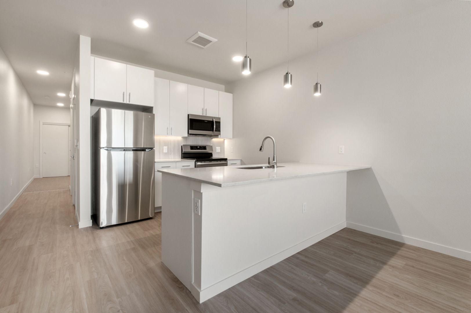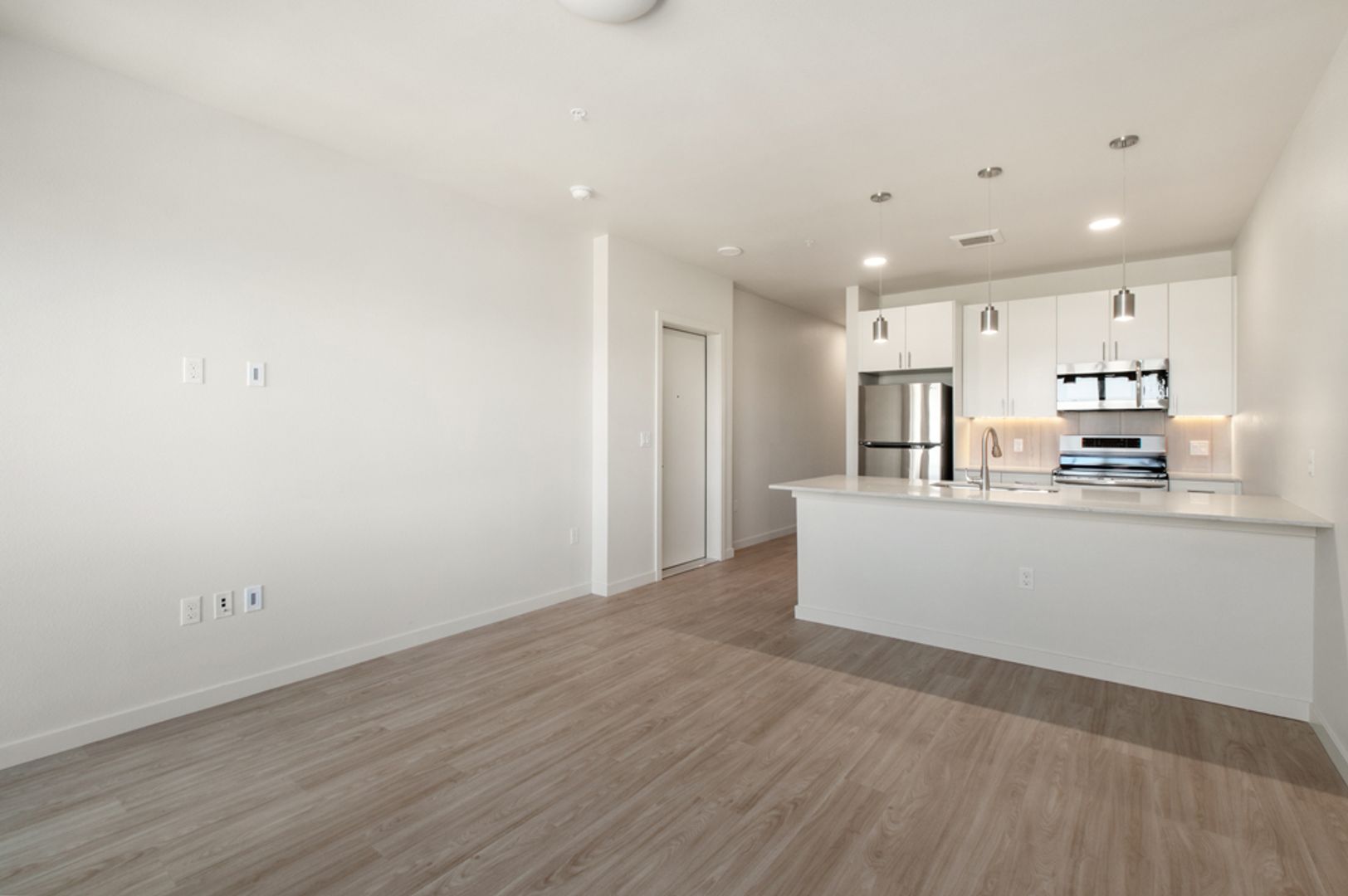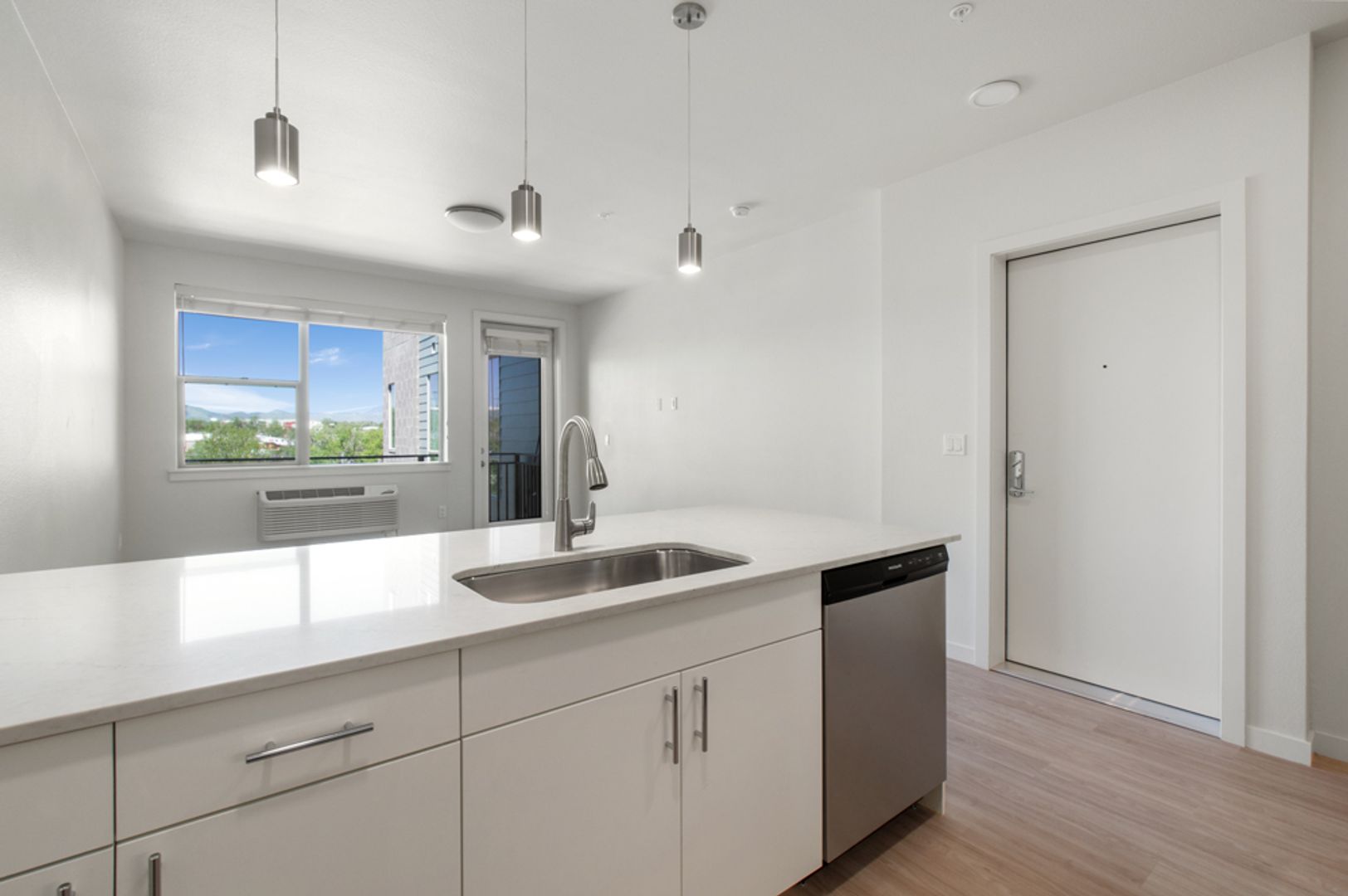 Our spacious studio, one and two-bedroom apartments feature large rooms with walk-in closets, sleek finishes, open layouts and private balconies or Juliet doors that let in abundant natural light and fresh mountain air. Bring the outside into your living room with fully functioning garage door walls. Each unit includes a full-size washer and dryer, stainless steel appliances and smart design details that make everyday living easy and comfortable.